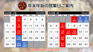 おたふく堂NEWS 年末年始の営業日のご案内 函館おたふく堂の年末年始の定休日は以下の通りとなります。12月23日(火)・30日(火)は休まず営業します12月31日(水)は17時までの営業となります 元日 1月1日(木)は定休日となります1月2日(金)・3日(土)は17時までの営業とな... 2025/12/07 おたふく堂NEWS
